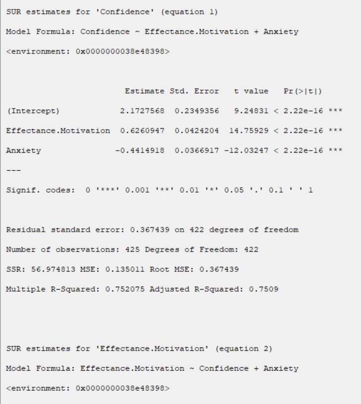 For example, for the Confidence variable, the variables Effectance Motivation and Anxiety are
